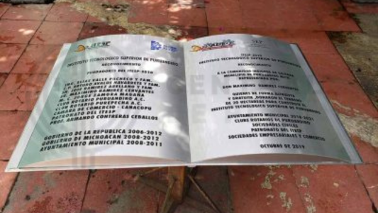 Libro fabricado en aluminio armado tipo caja y grabado por el frente.