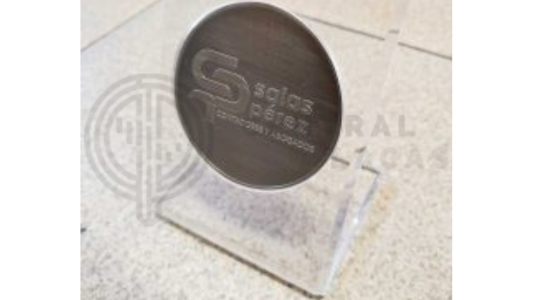 Reconocimiento base de aluminio rígido grabado a fondo y bastidor del mismo material.